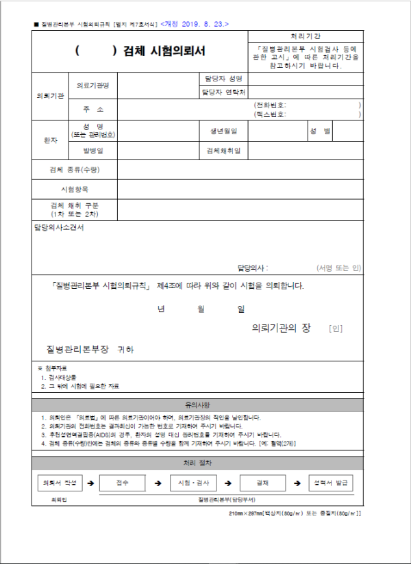 질병관리본부 검체시험의뢰서 슈퍼관리자 2024-05-30 슈퍼관리자 0 160 2024.05.30 17:21 2024.05.30 17:21 질병관리본부 의뢰서 1.pdf (55.8K) 질병관리본부 검체시험의뢰서