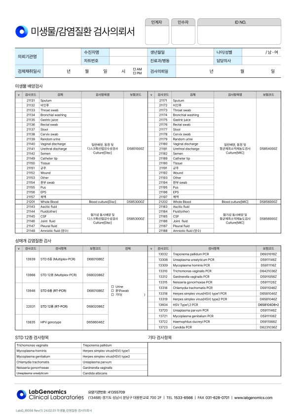 미생물/감염질환 검사의뢰서