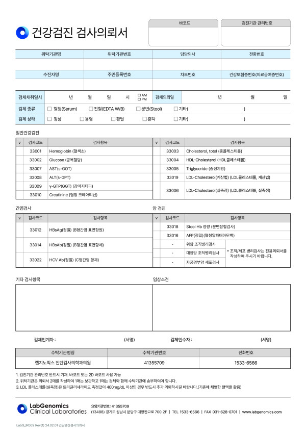 건강검진 검사의뢰서