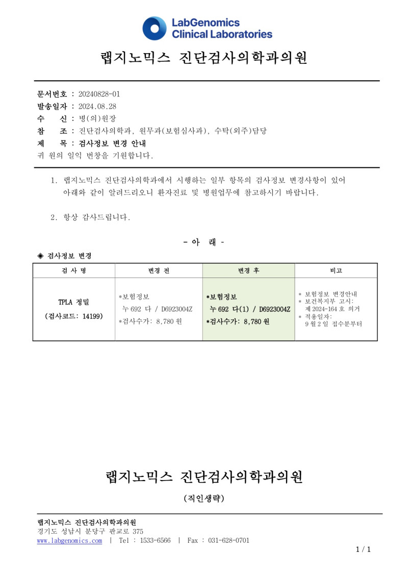공문[20240828-01호]TPLA정밀 검사정보변경 안내 최고관리자 2024-10-11 14:23:29 최고관리자 0 515 2024.10.11 14:23 2024.10.11 14:23 공문[20240828-01호]TPLA정밀 검사정보변경 안내.pdf (126.6K) 공문[20240828-01호]TPLA정밀 검사정보변경에 대하여 다음과 같이 공유 드리오나, 확인 후 업무에 적용해 주시기 바랍니다.
