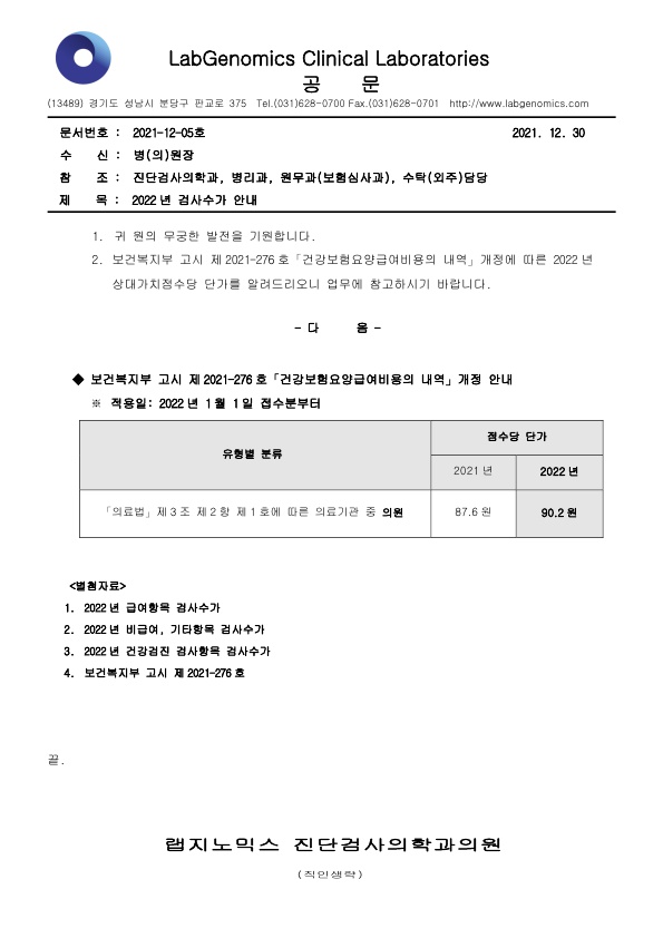 - 2022년 건강보험요양급여비용의 내역 개정 안내